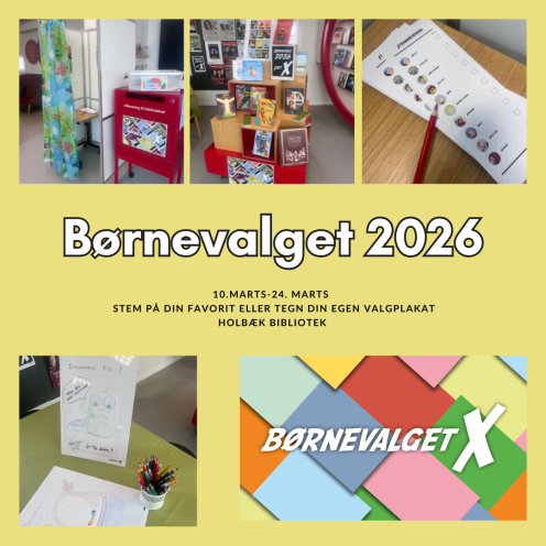 Denne gang er det også muligt at tegne din helt egen valgplakat med valgslogan og billede. De færdige plakater udstilles i børneudlånet.